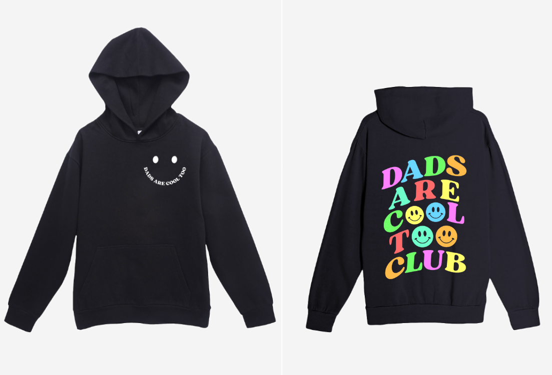 This black hoodie is perfect for cool dads to match with their kids. Made with comfort in mind, this Dads Are Cool Too Club Hoodie is a must-have addition to any dad's wardrobe. Show off your love and pride for your little ones with this stylish and comfortable hoodie.